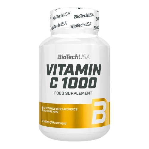 Tablette de complément alimentaire contenant 1000 mg de vitamine C avec du fruit d’églantier, de la fleur de sureau et des bioflavonoïdes